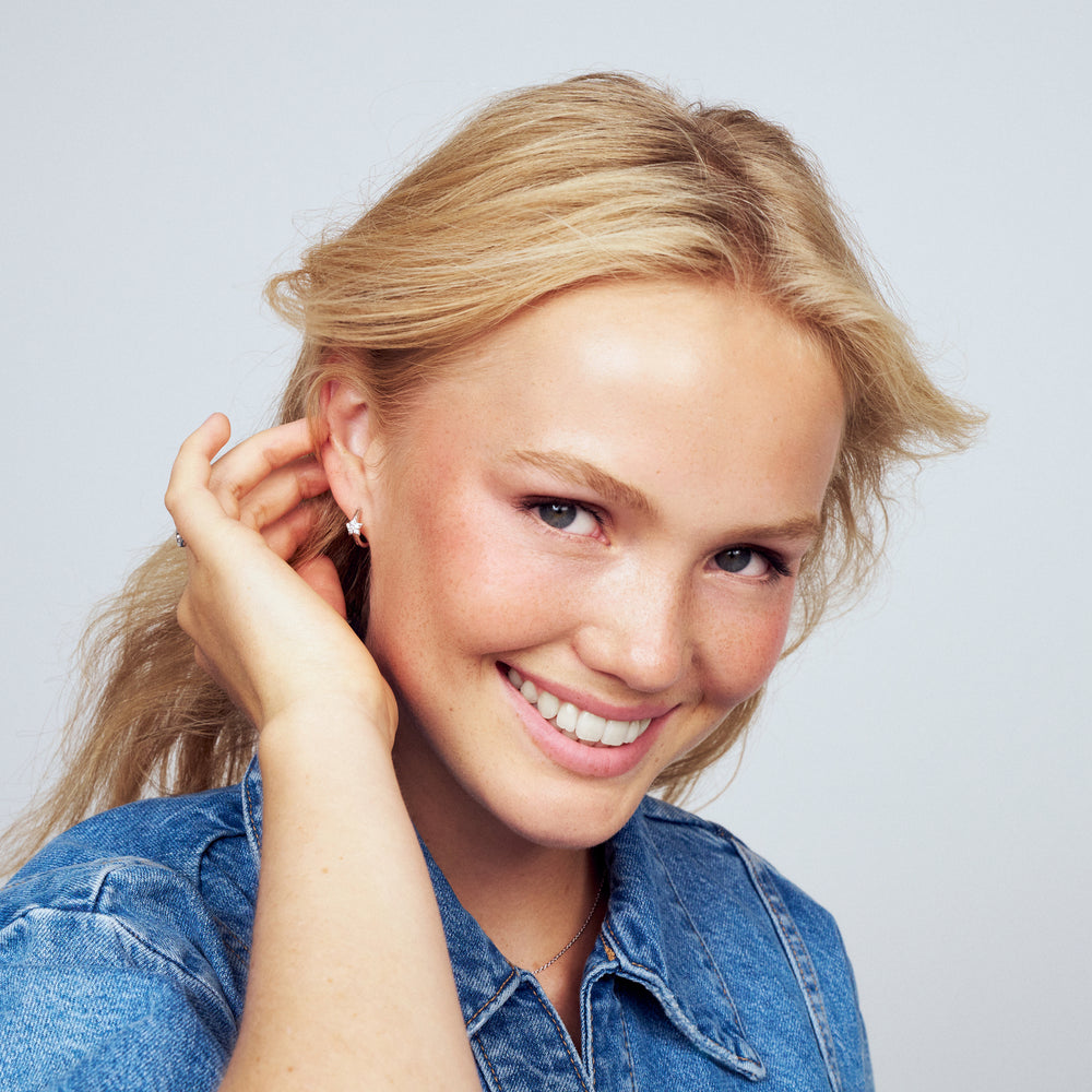 Earrings made of 18 karat gold plated 925 Sterling Silver or rhodium plated 925 Sterling Silver, a polished surface, and handset with facet cut white zirconia.Earring measurements: Inner diameter 11 mm