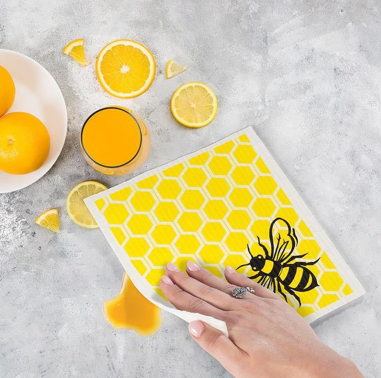 Sweeten your cleaning with this sunny set of 2 Bee & Honeycomb Amazing Swedish Dishcloths. These biodegradable Swedish-made dishcloths are as durable as they are eco-friendly – each featuring variations of a fun bee/honeycomb pattern to help make cleaning more colourful. Ultra-absorbent, each machine-washable cloth replaces up to 15 rolls of paper towel, and lasts for up to 12 months. Perfect for the home, office or cottage.