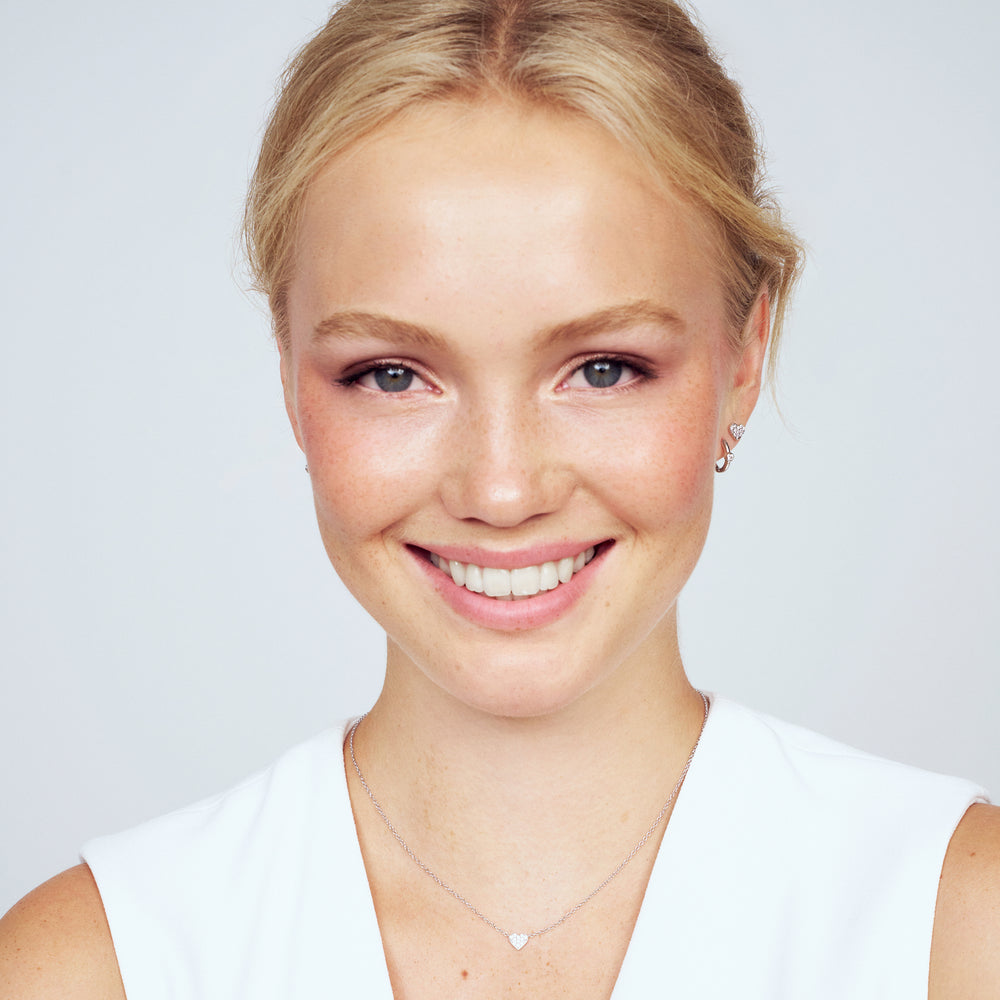 • Necklace made of 18 karat gold plated 925 Sterling Silver or rhodium plated 925 Sterling Silver, a polished surface, and handset with facet cut white zirconia.