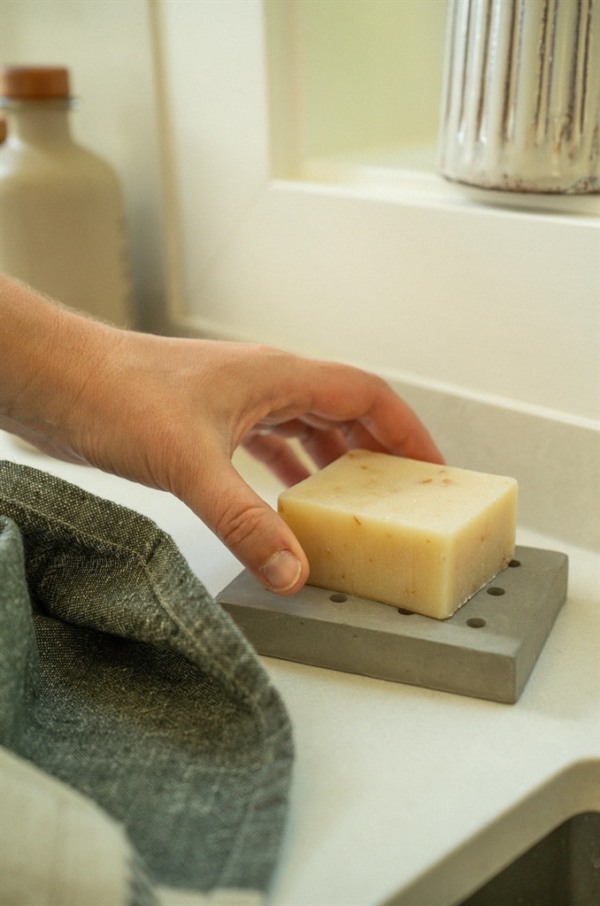 Bring modern texture to your bathroom decor with the Concrete Soap Dish, Dots. Handcrafted by artisans and made from 100% concrete, this matte-finished soap dish features a dotted grid of drainage holes that keeps bars dry and stylishly displayed. With its sculptural simplicity and natural tone, it’s the perfect sink-side statement piece.