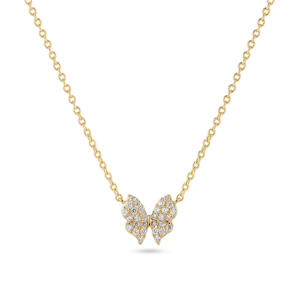 Necklace made of 18k gold plated 925 Sterling Silver or rhodium plated 925 Sterling Silver, a polished surface, and handset with facet cut white zirconia.Necklace measurements: Width 12.5 mm, length 9 mm, chain length up to 45 cm - adjustable