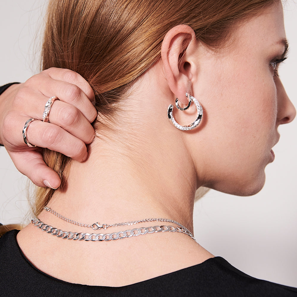Earrings made of 925 Sterling silver with rhodium, polished surface and facet cut white zirconia.Earrings measurements: length 15.6 mm, Width 2.5 mm