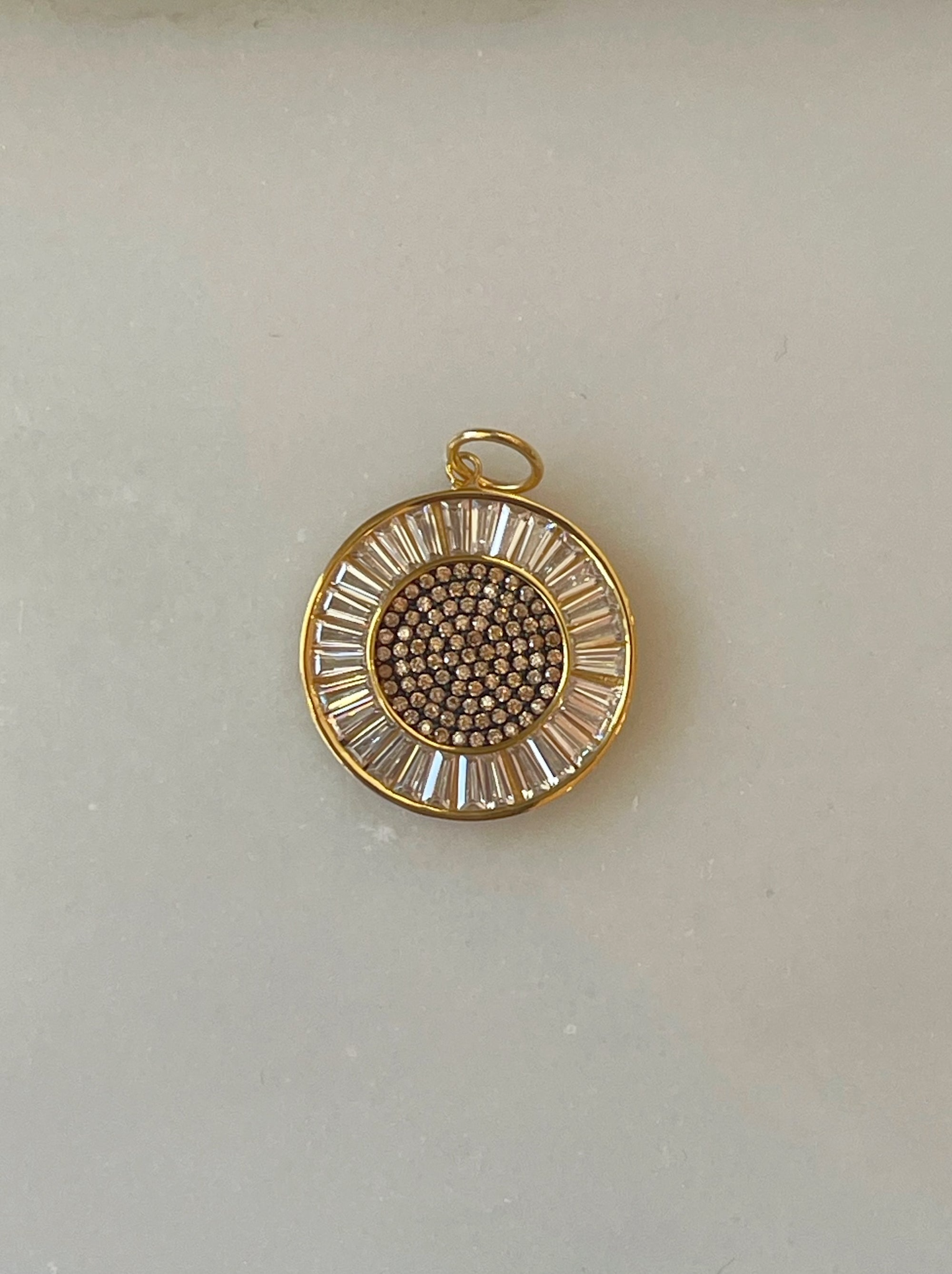 Eye-catching elegance. Gorgeous medallion style charm embellished with round & baguette style crystals.
