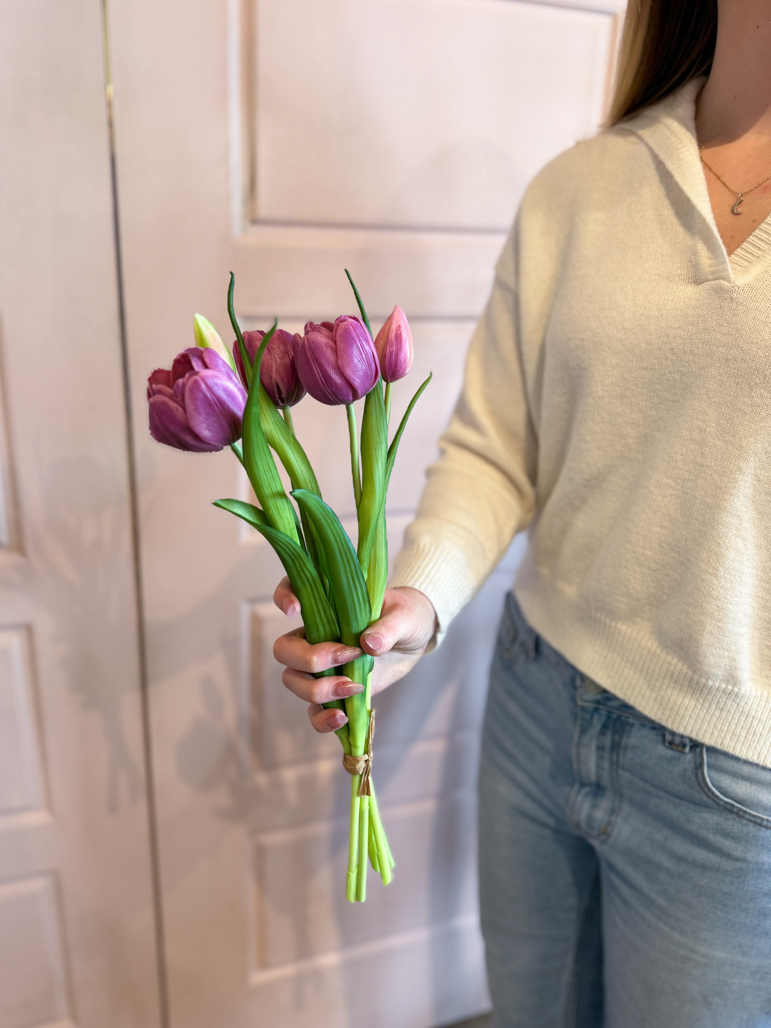 • A soft, lifelike bundle with full, layered blooms, featuring three flowers and two buds.