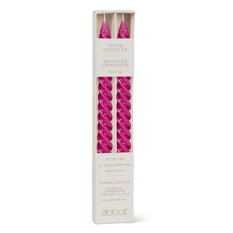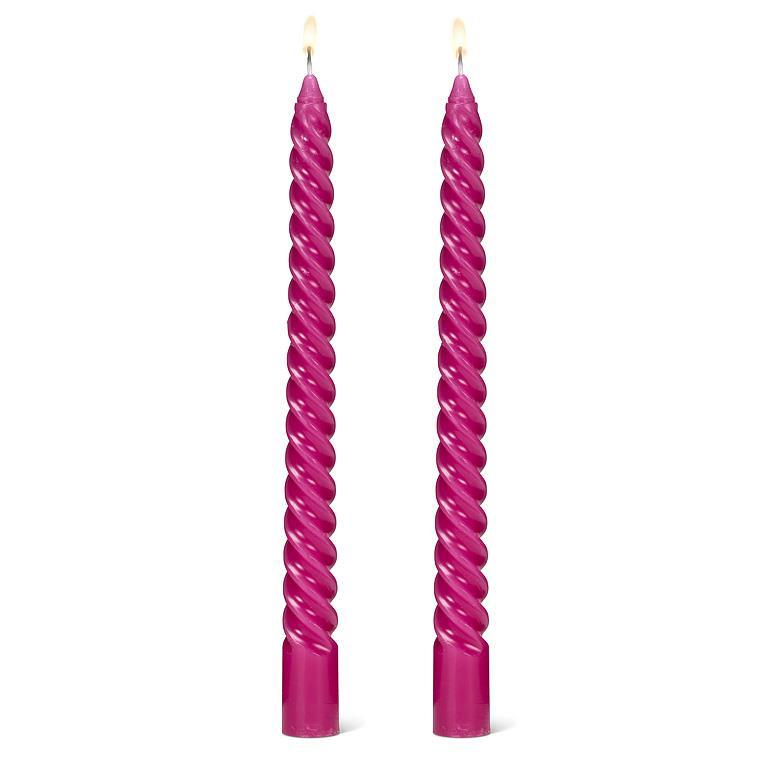 Add a twist to your candlelight with this unique Tight Spiral Taper Candle in Fuschia. With its elegant, coiled design, this 100% paraffin wax candle adds sophistication and style to any room. Perfect for creating ambience, it’s the kind of taper that makes a statement — whether you’re setting the mood for a dinner party or adding a warm, flickering glow to a favorite corner or space. Virtually dripless, each candle has over 6 hours of burn time.Size: 9.5"HMaterial: WaxColor: FuschiaBurn Time: 6+ Hours