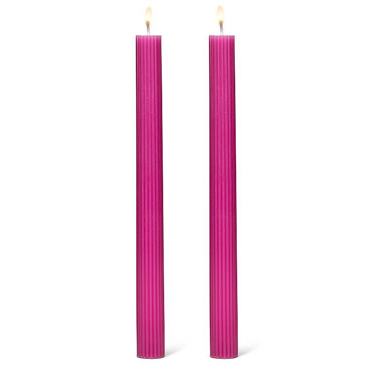 This classy fuschia Ribbed Taper Candle is the perfect blend of refinement and sophistication. Crafted out of 100% paraffin wax, its sleek, textured design adds an elevated touch to any space. Whether placed on a mantle, dining table, or windowsill, it helps make surroundings extra warm and inviting. Virtually dripless, each candle has over 6 hours of burn time.Size: 9.5"HMaterial: WaxColor: FuschiaBurn Time: 6+ Hours