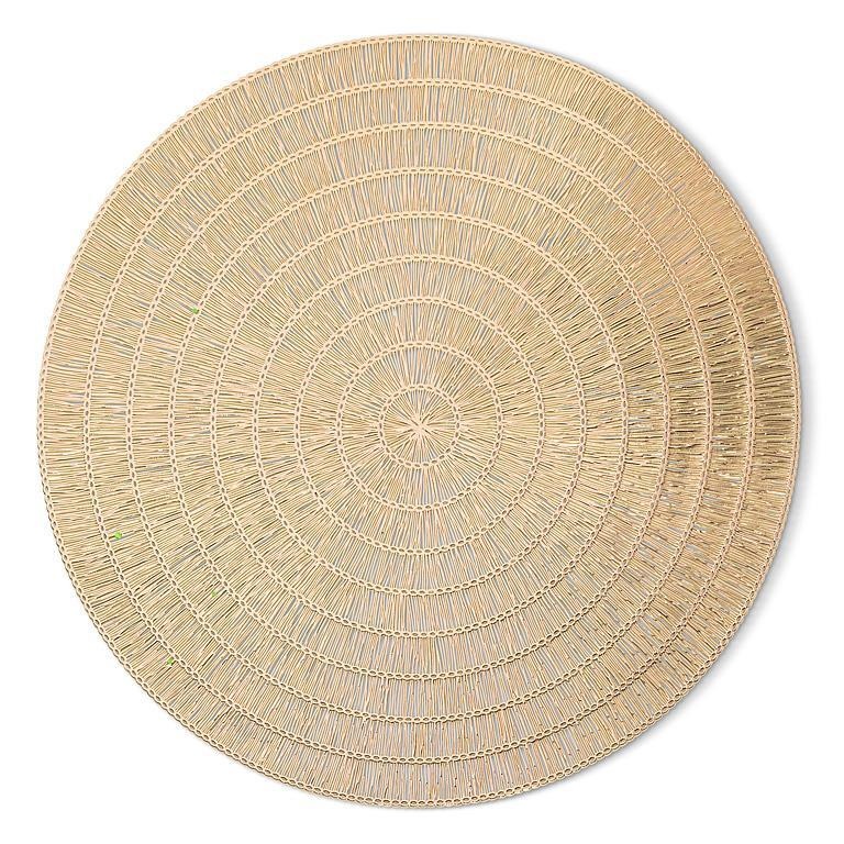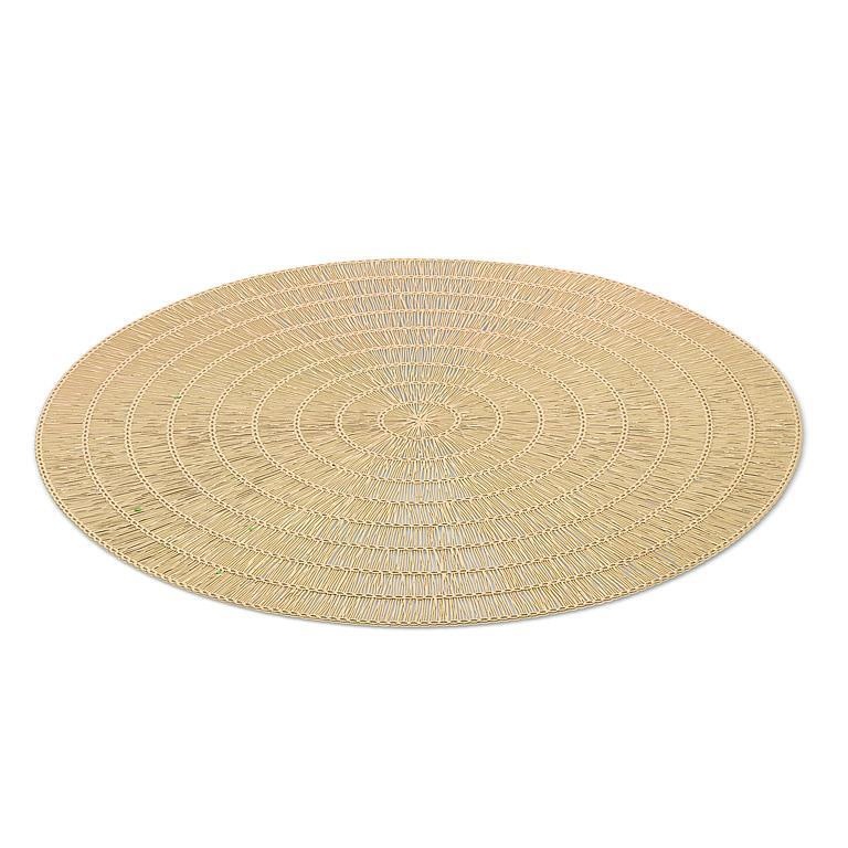 Add some flair to your festive entertaining with this eye-catching Round Textured Placemat. Crafted out of durable PVC, this placemat in gold is sure to brighten any table while protecting its surface throughout the holidays, for any get-together or entertaining occasion.