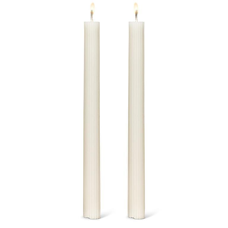 This classy ivory Ribbed Taper Candle is the perfect blend of refinement and sophistication. Crafted out of 100% paraffin wax, its sleek, textured design adds an elevated touch to any space. Whether placed on a mantle, dining table, or windowsill, it helps make surroundings extra warm and inviting. Virtually dripless, each candle has over 6 hours of burn time.Size: 9.5"HMaterial: WaxColor: IvoryBurn Time: 6+ hrs