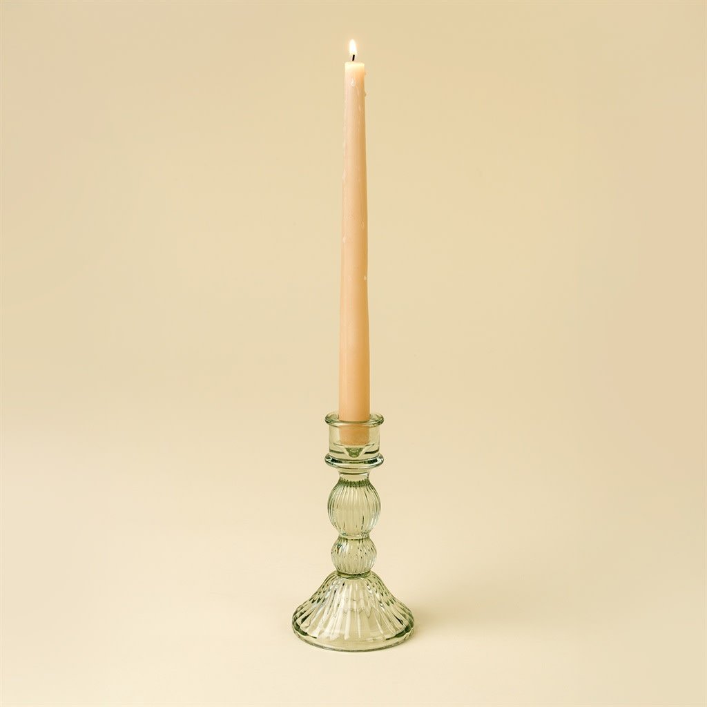 Elevate your candlelight moments with the Callista Glass Candleholder. Crafted from 100% moulded glass, this taper candle holder blends vintage-inspired charm with contemporary clarity. Its rounded silhouette and soft green finish bring a soft elegance to any tablescape, mantle, or shelf, while creating the perfect setting for mood and atmosphere.