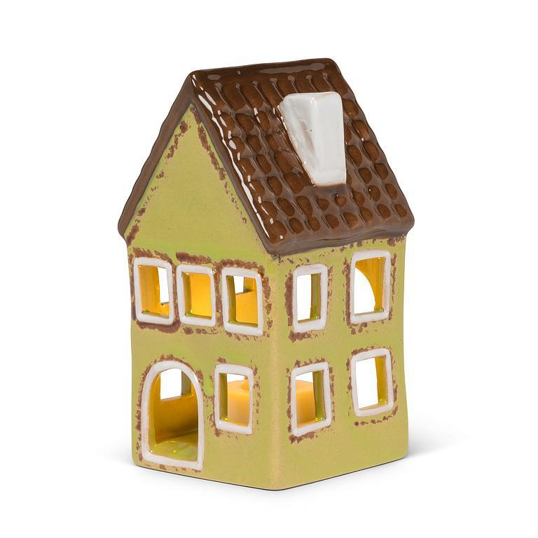 Build a little village with our Large Tall House with Windows, a charming and cozy addition to your decor. Crafted with care, this ceramic tealight holder creates a warm and inviting ambiance. Perfect for creating a soothing glow in any room. This product is suitable for LED tealights or lightstrings only.