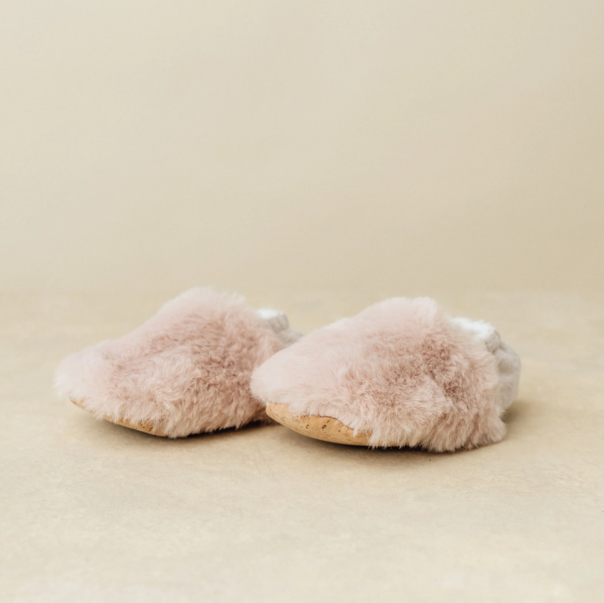 Bunny feet faux fur slippers in soft pink.