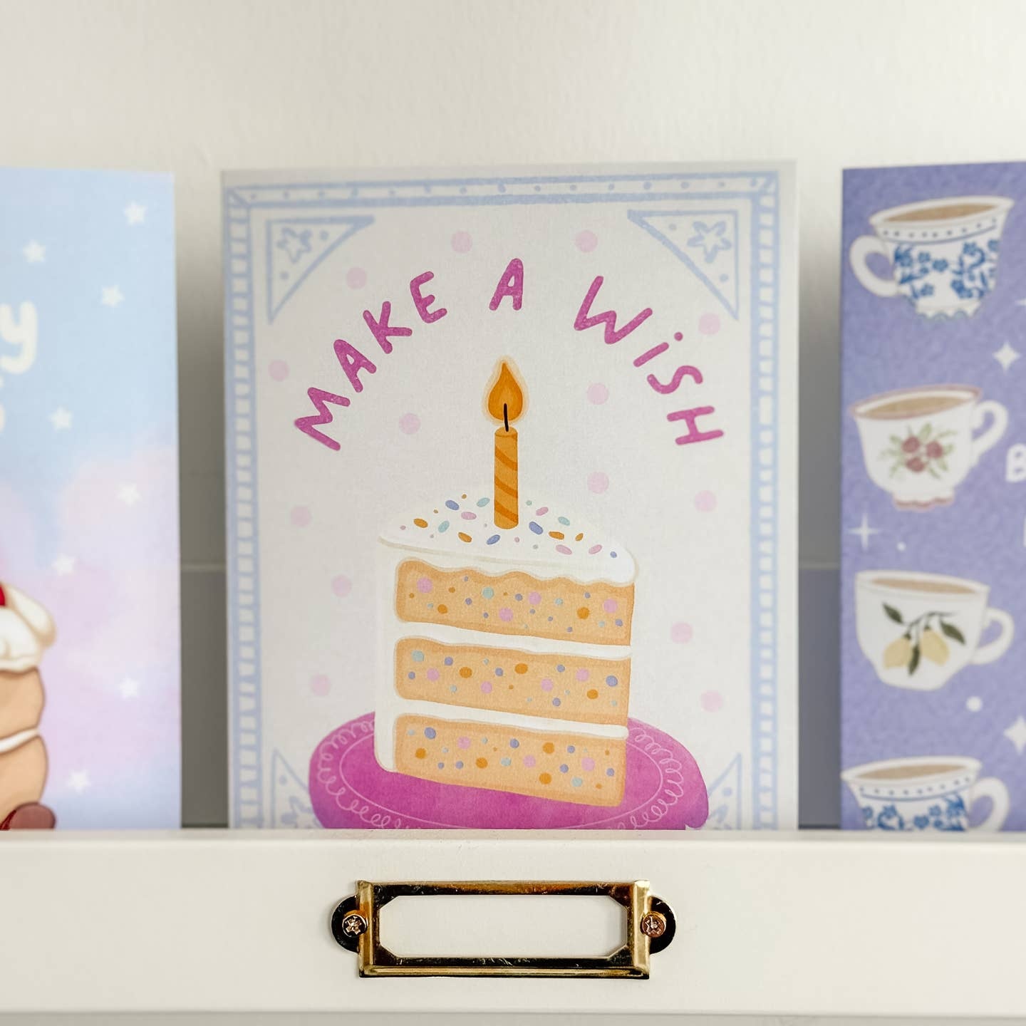 A sweet and celebratory birthday card featuring a slice of pastel confetti cake topped with a single candle. With its pretty pink tones and whimsical style, it’s perfect for birthdays of all ages — from little girls to friends who never stopped loving cake and sprinkles. Great as a birthday card for her, a birthday card for girls, or a whimsical birthday greeting card for anyone with a sweet tooth.