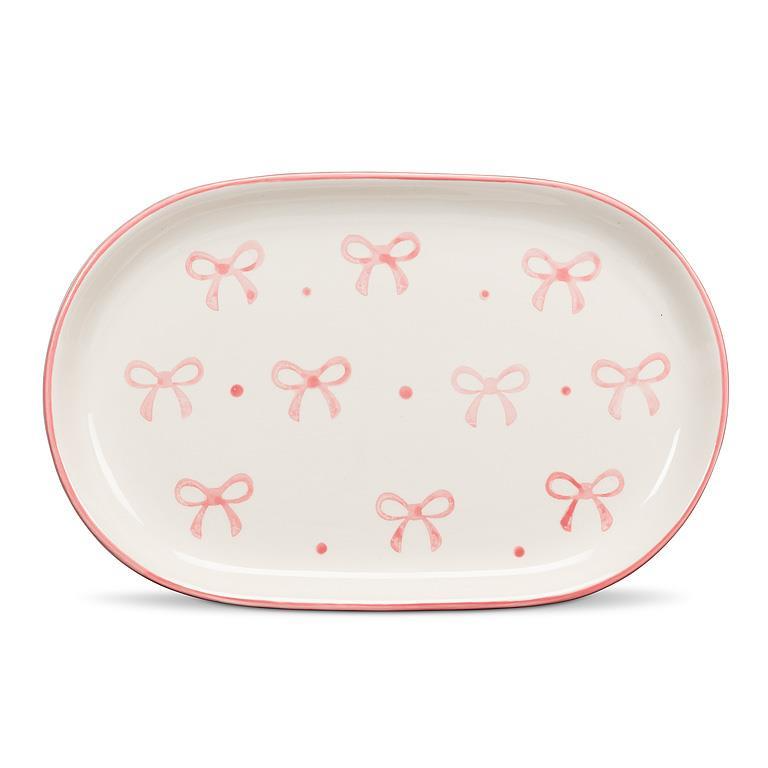 Tray meets treasure in this elegantly elongated ceramic design. Outlined with soft curves and finished with pink bows, it’s as happy hosting candles and cosmetics as it is corralling cutlery. Style it your way – it can handle the spotlight.