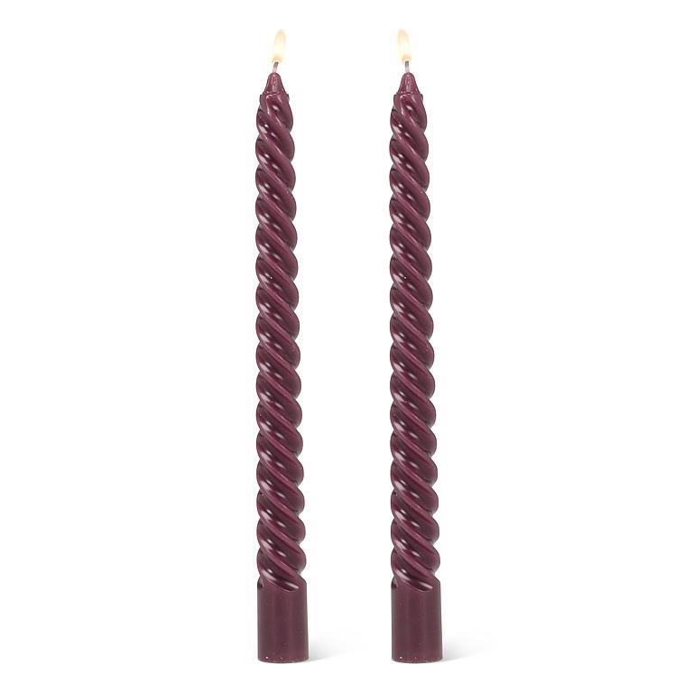 Add a twist to your candlelight with this unique Tight Spiral Taper Candle in Purple. With its elegant, twisted design, this 100% paraffin wax candle adds a touch of sophistication and unexpected style to any room. Perfect for creating ambience, it’s the kind of taper that makes a statement – whether you’re setting the mood for a dinner party or adding a warm, flickering glow to the favorite corner of your home. Virtually dripless, each candle has over 6 hours of burn time.