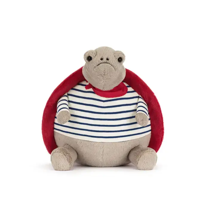 Timmy Turtle is ready to embrace his romantic side in a classic navy-and-white striped outfit, finished with a sweetheart-stitched shell. A little shy when it comes to matters of the heart, Timmy still finds magic in candlelit dinners, slow strolls, and soft, soothing melodies. It’s the calm, comforting moments that truly win him over—and that same peaceful charm is what makes him so easy to love.