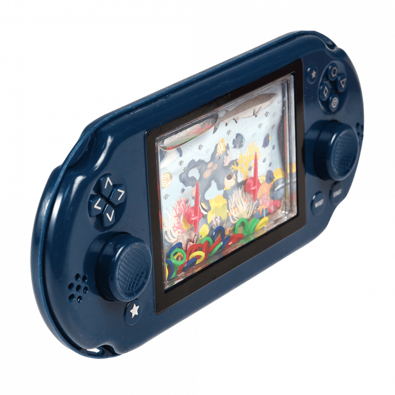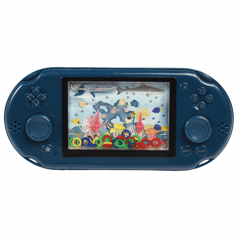 Get all nostalgic with this fun and easy handheld game - no batteries required! Simply press the control buttons to try and get as many coloured rings as possible onto the two scoring pegs. Perfect for keeping children entertained on long journeys or a rainy day. This Coral Reef water game comes in dark blue and features a coral reef scene as the background of the play area.