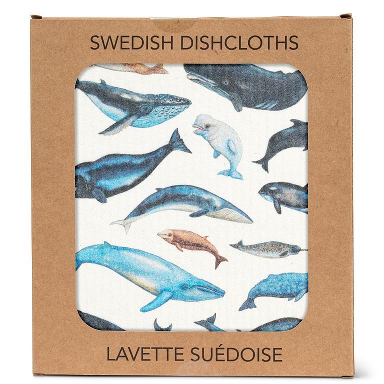 Have a on ocean of spills to clean? It's no problem with our Whales Dishcloth. This biodegradable dishcloth is as useful as it is eco-friendly. Designed by American artist Wendy Russell, this dishcloth is ultra-absorbent, machine-washable, and replaces up to 15 rolls of paper towel. Durable enough to last for up to 12 months. Perfect for the home, office or cottage.
