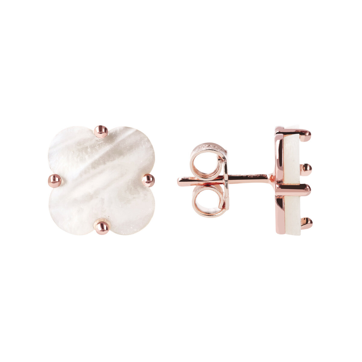 • Bronzallure stud earrings made of Golden Rosé alloy, 18kt rose gold plated, with flower-shaped natural stone (10.9x10.7 mm); pin and butterfly closure.