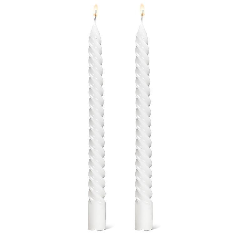 Add a twist to your candlelight with this unique Tight Spiral Taper Candle in White. With its elegant, coiled design, this 100% paraffin wax candle adds sophistication and style to any room. Perfect for creating ambience, it’s the kind of taper that makes a statement — whether you’re setting the mood for a dinner party or adding a warm, flickering glow to a favorite corner or space. Virtually dripless, each candle has over 6 hours of burn time.Size: 9.5"HMaterial: WaxColor: WhiteBurn Time: 6+ Hours